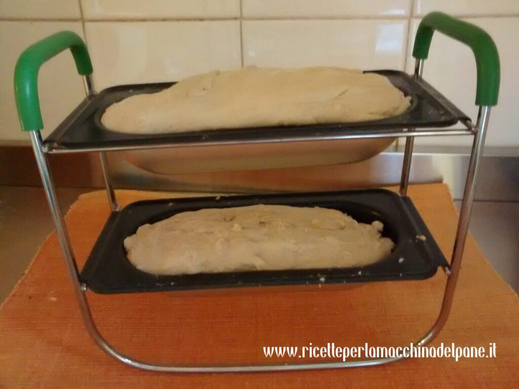 A un certo punto del programma la macchina emetterà ancora dei segnali acustici per avvisarvi che dovete tirare fuori l’impasto e inserirlo nelle vaschettine. Estraete quindi il cestello dalla macchina e separatelo in modo da metterlo nelle vaschette per le baguettes. Dopodiché inserite il supporto con le vaschettine nella macchina e fate ripartire il programma.
