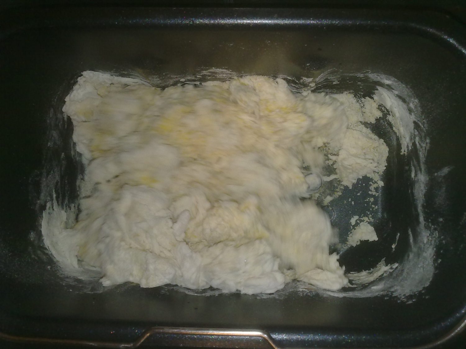 A questo punto bisogna solo inserire il pane nella macchina, programma “Pane Integrale“, livello di cottura medio ~ elevato. Ecco qualche immagine della fase di impasto: