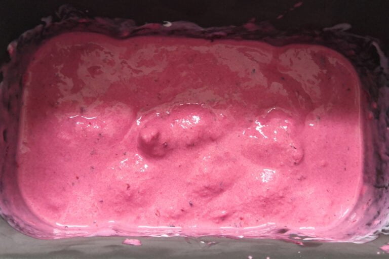 Noterete che pian piano la macchina del pane riuscirà a spezzare la frutta in piccoli pezzettini e li mescolerà allo yogurt e al miele. Lasciate che la macchina lavori fino alla fine del programma, che potete però fermare prima se ritenete che il gelato abbia raggiunto la consistenza desiderata