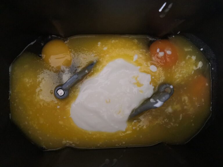 Inserite tutti gli ingredienti liquidi nel cestello (yogurt, burro sciolto, uova)