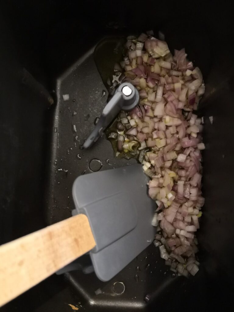 Questa ricetta segue sostanzialmente quello che si fa normalmente quando si cuoce il risotto nella padella, con la differenza che sarà la macchina del pane a mescolare il risotto per noi. Il che vuol dire che mentre la macchina del pane fa il suo lavoro, noi potremo dedicarci ad altro e controllare lo stato del risotto solo di tanto in tanto, risparmiando un sacco di tempo!