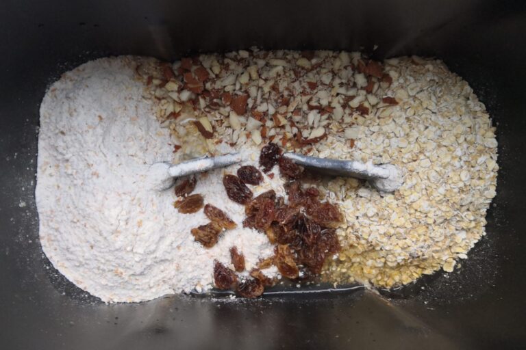 Strizzate l'uvetta con le mani. Aggiungete tutti gli altri ingredienti nella macchina del pane
