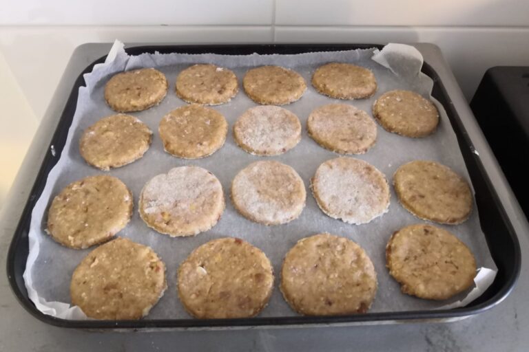 Ricoprite una teglia di carta da forno e inseritevi i biscotti, ben distanziati. Cuocete per circa 15-20 minuti o fino a quando non saranno dorati. Fate raffreddare e gustate i vostri buonissimi e salutari biscotti!