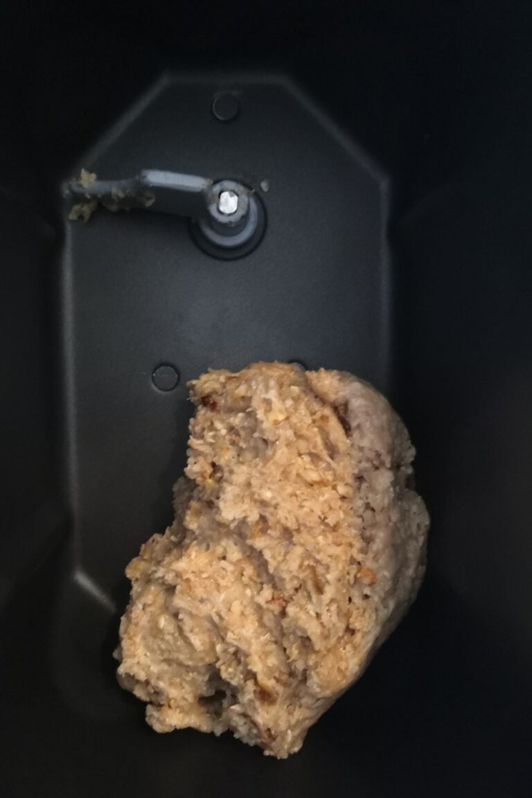 Avviate la macchina del pane nella modalità solo impasto, dovrebbe durare 15 minuti e iniziare a impastare subito. Se durante l'impasto notate che la farina rimane attaccata ai bordi, usate una spatola di legno o silicone per far mescolare bene il tutto